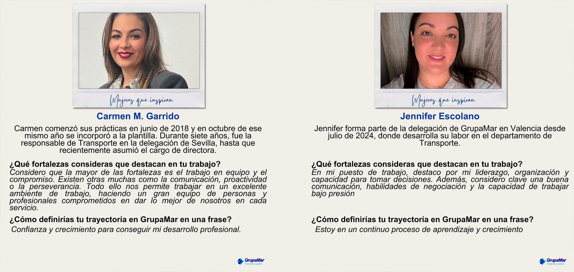 Bajo el lema “Mujeres que inspiran” conocer y reconocer a algunas de ellas a través de breves entrevistas en las que comparten su experiencia y visión, así como el impacto que generan en su equipo y en GrupaMar.