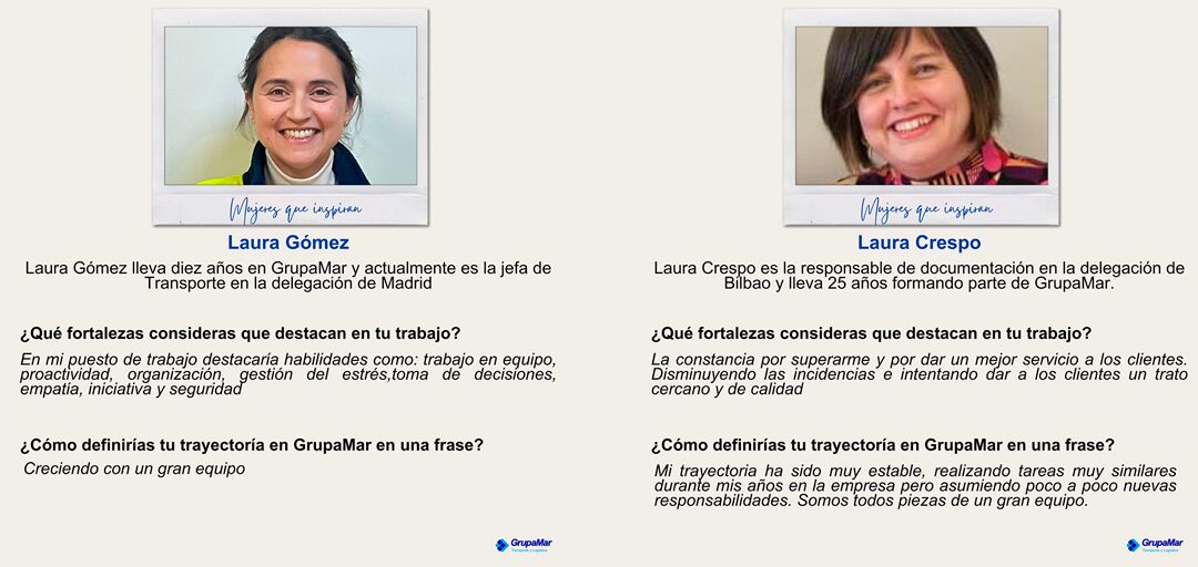 Conoceremos a dos veteranas que han crecido profesionalmente en GrupaMar y que nos cuentan su visión y experiencia: Laura Gómez, responsable de Transporte en la delegación de Madrid, y Laura Crespo, responsable de Documentación en la delegación de Bilbao.